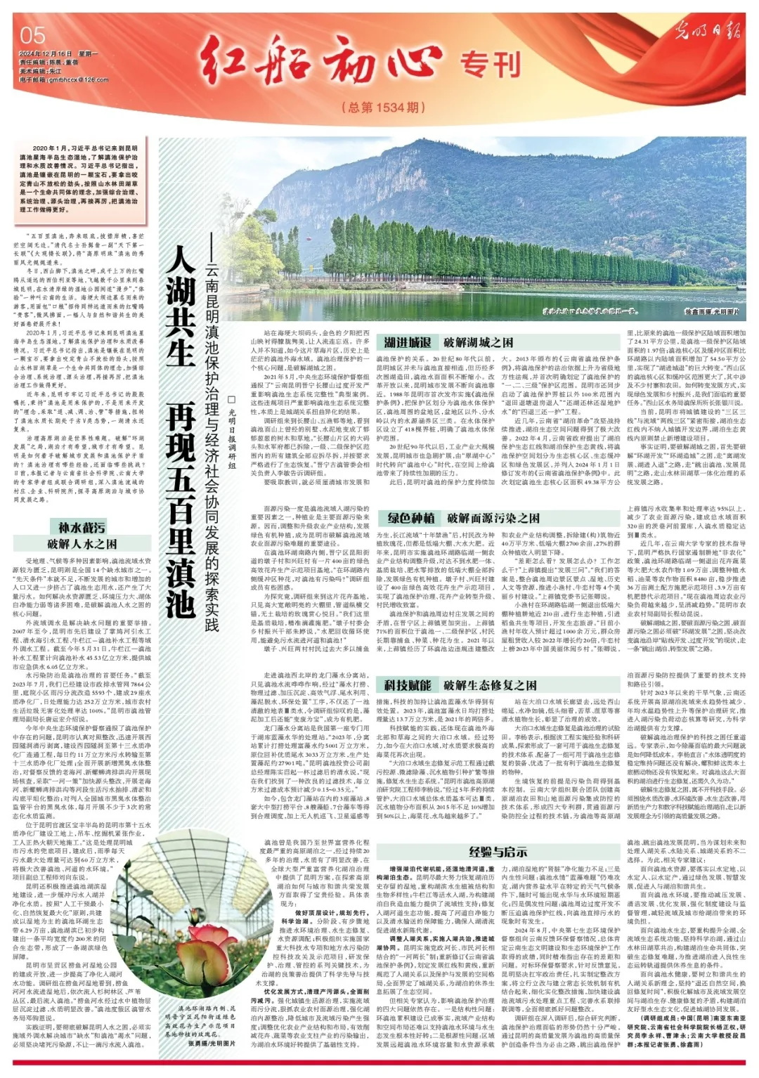近日,云南大学东陆特聘教授、国家万人计划领军人才段昌群教授作为湖泊冶理领域专家,应邀参加了光明日报、云南省社科院共同组织的联合调研组活动。调研组深入滇池流域的村落、企业及科研院所,就高原湖泊与区域协同发展的路径进行了深入探讨。调研组认为,滇池水质基础虽已有所巩固,但尚需进一步提升,必须大力加强和优化科技支撑,以推动流域生态系统的健康和生态文明建设,为湖泊水环境、水生态和水资源质量的持续改善打下坚实基础。调研组同时还指出,要跳出滇池保护滇池、跳出滇池发展昆明,处理好人湖关系、水陆关系、城湖关系,并将其作为未来冶滇的基本方略。